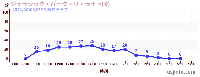 • ジュラシック・パーク・ザ・ライド(R)$B$N(B2021年10月03日の待ち時間