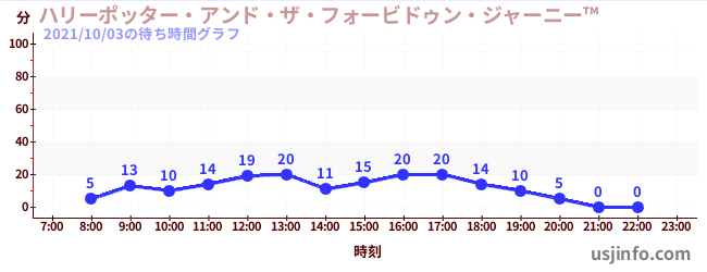 • ハリーポッター・アンド・ザ・フォービドゥン・ジャーニー™$B$N(B2021年10月03日の待ち時間