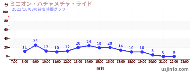 • ミニオン・ハチャメチャ・ライド$B$N(B2021年10月03日の待ち時間