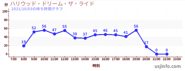 • ハリウッド・ドリーム・ザ・ライド$B$N(B2021年10月03日の待ち時間