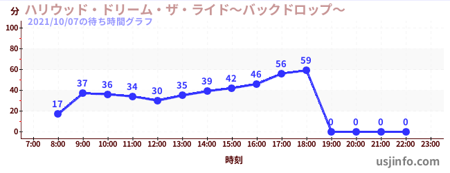 • ハリウッド・ドリーム・ザ・ライド〜バックドロップ〜$B$N(B2021年10月07日の待ち時間
