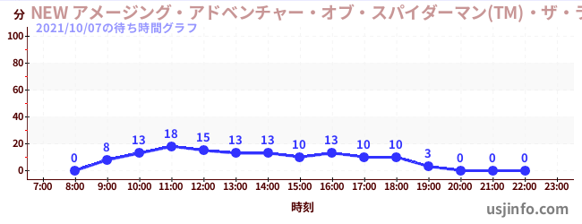 • NEW アメージング・アドベンチャー・オブ・スパイダーマン(TM)・ザ・ライド 4K3D$B$N(B2021年10月07日の待ち時間
