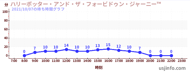 • ハリーポッター・アンド・ザ・フォービドゥン・ジャーニー™$B$N(B2021年10月07日の待ち時間