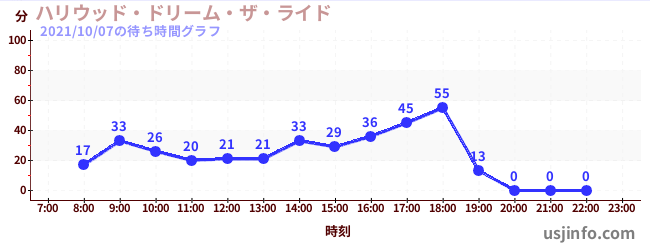 • ハリウッド・ドリーム・ザ・ライド$B$N(B2021年10月07日の待ち時間