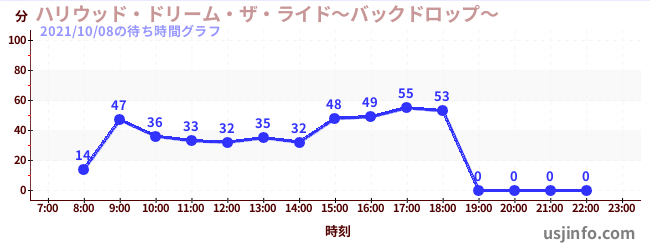 • ハリウッド・ドリーム・ザ・ライド〜バックドロップ〜$B$N(B2021年10月08日の待ち時間