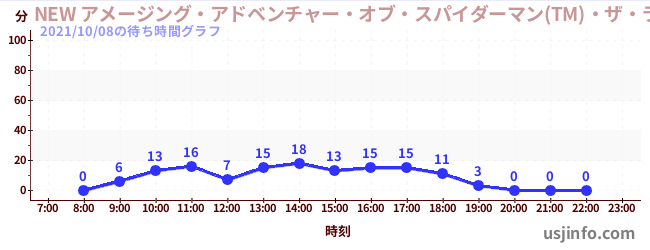 • NEW アメージング・アドベンチャー・オブ・スパイダーマン(TM)・ザ・ライド 4K3D$B$N(B2021年10月08日の待ち時間