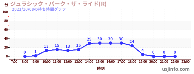 • ジュラシック・パーク・ザ・ライド(R)$B$N(B2021年10月08日の待ち時間