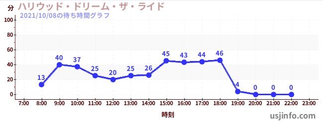 • ハリウッド・ドリーム・ザ・ライド$B$N(B2021年10月08日の待ち時間