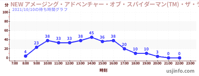 • NEW アメージング・アドベンチャー・オブ・スパイダーマン(TM)・ザ・ライド 4K3D$B$N(B2021年10月10日の待ち時間