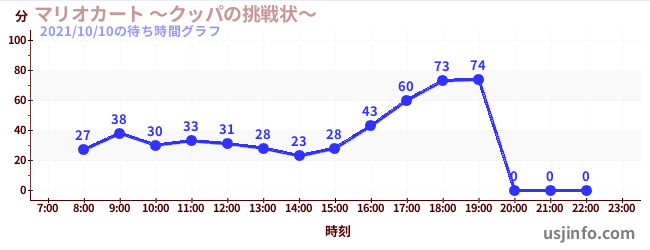 • マリオカート ~クッパの挑戦状~$B$N(B2021年10月10日の待ち時間