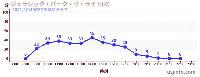 • ジュラシック・パーク・ザ・ライド(R)$B$N(B2021年10月10日の待ち時間