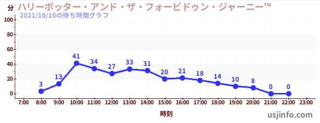 • ハリーポッター・アンド・ザ・フォービドゥン・ジャーニー™$B$N(B2021年10月10日の待ち時間