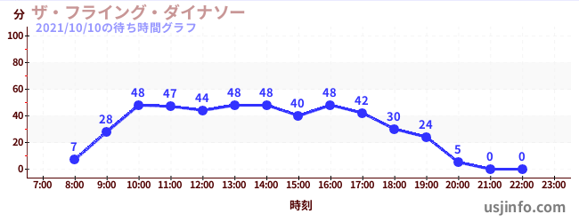 • ザ・フライング・ダイナソー$B$N(B2021年10月10日の待ち時間