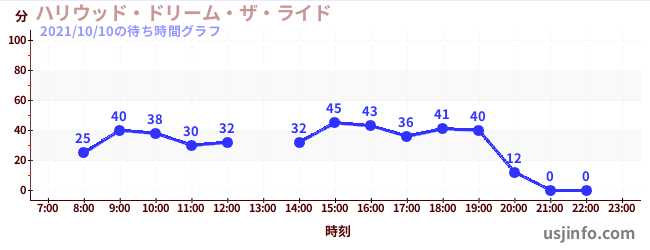 • ハリウッド・ドリーム・ザ・ライド$B$N(B2021年10月10日の待ち時間