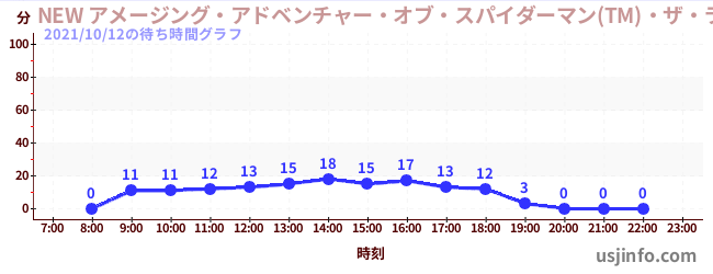 • NEW アメージング・アドベンチャー・オブ・スパイダーマン(TM)・ザ・ライド 4K3D$B$N(B2021年10月12日の待ち時間