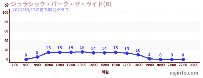 • ジュラシック・パーク・ザ・ライド(R)$B$N(B2021年10月12日の待ち時間