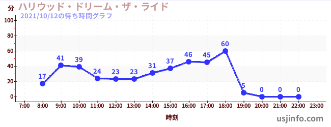 • ハリウッド・ドリーム・ザ・ライド〜バックドロップ〜$B$N(B2021年10月12日の待ち時間