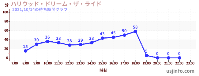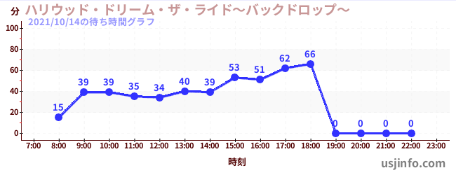 • ハリウッド・ドリーム・ザ・ライド〜バックドロップ〜$B$N(B2021年10月14日の待ち時間