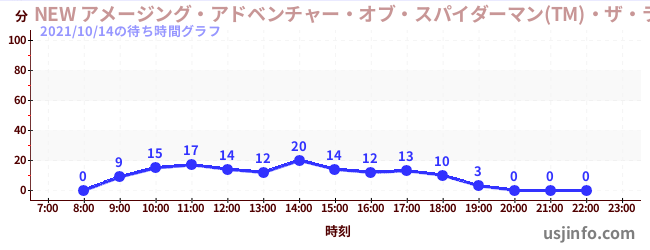 • NEW アメージング・アドベンチャー・オブ・スパイダーマン(TM)・ザ・ライド 4K3D$B$N(B2021年10月14日の待ち時間