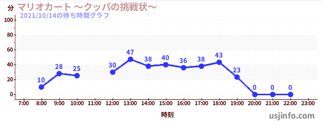 • マリオカート ~クッパの挑戦状~$B$N(B2021年10月14日の待ち時間