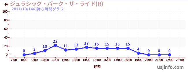 • ジュラシック・パーク・ザ・ライド(R)$B$N(B2021年10月14日の待ち時間