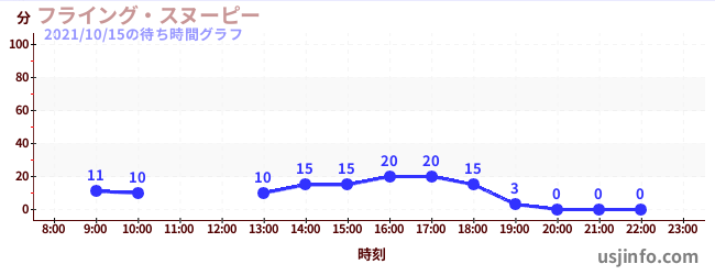 • フライング・スヌーピー$B$N(B2021年10月15日の待ち時間