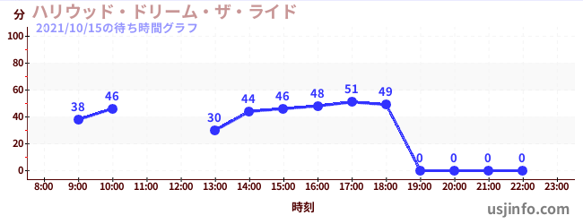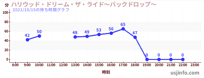 • ハリウッド・ドリーム・ザ・ライド〜バックドロップ〜$B$N(B2021年10月15日の待ち時間
