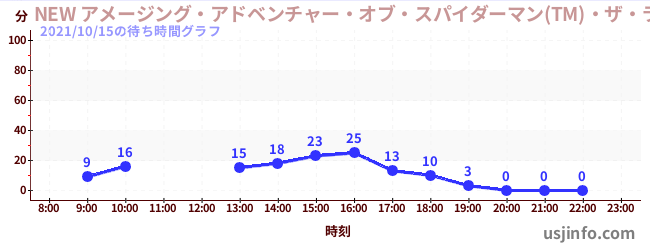 • NEW アメージング・アドベンチャー・オブ・スパイダーマン(TM)・ザ・ライド 4K3D$B$N(B2021年10月15日の待ち時間