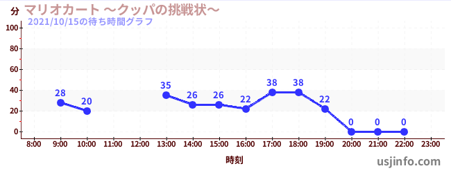 • マリオカート ~クッパの挑戦状~$B$N(B2021年10月15日の待ち時間