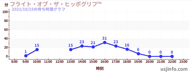 • フライト・オブ・ザ・ヒッポグリフ™$B$N(B2021年10月15日の待ち時間