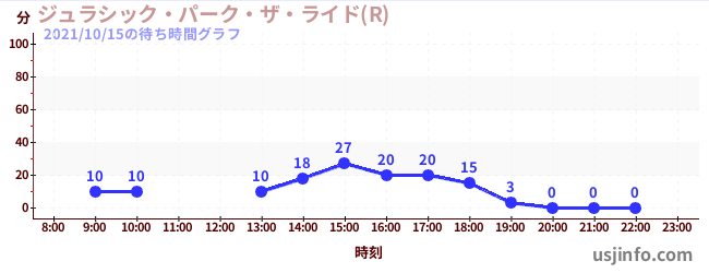• ジュラシック・パーク・ザ・ライド(R)$B$N(B2021年10月15日の待ち時間