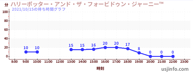 • ハリーポッター・アンド・ザ・フォービドゥン・ジャーニー™$B$N(B2021年10月15日の待ち時間