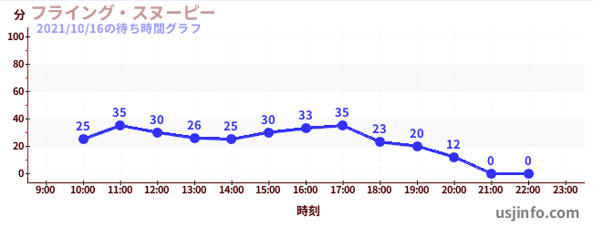 • フライング・スヌーピー$B$N(B2021年10月16日の待ち時間