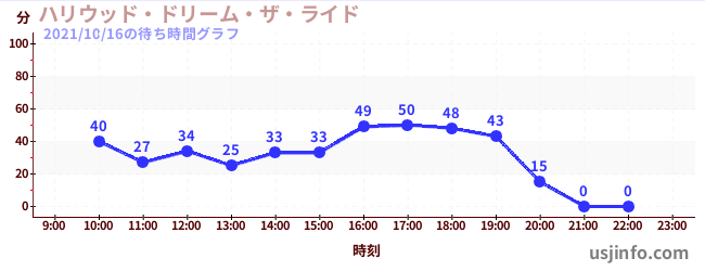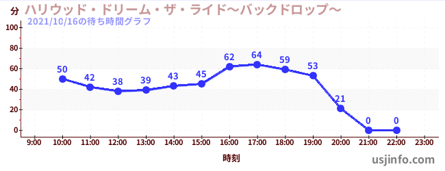 • ハリウッド・ドリーム・ザ・ライド〜バックドロップ〜$B$N(B2021年10月16日の待ち時間