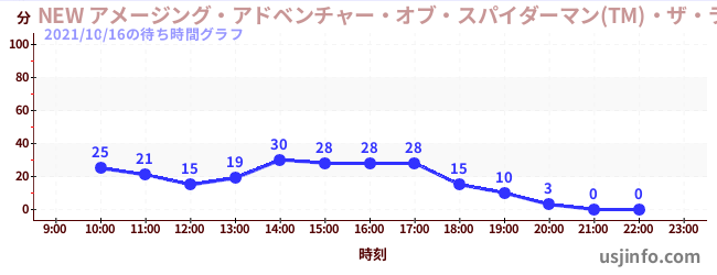 • NEW アメージング・アドベンチャー・オブ・スパイダーマン(TM)・ザ・ライド 4K3D$B$N(B2021年10月16日の待ち時間