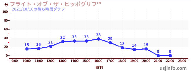 • フライト・オブ・ザ・ヒッポグリフ™$B$N(B2021年10月16日の待ち時間