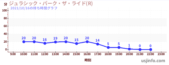 • ジュラシック・パーク・ザ・ライド(R)$B$N(B2021年10月16日の待ち時間