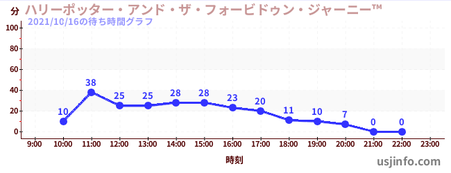 • ハリーポッター・アンド・ザ・フォービドゥン・ジャーニー™$B$N(B2021年10月16日の待ち時間