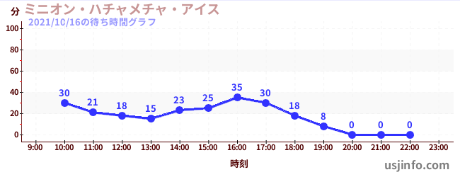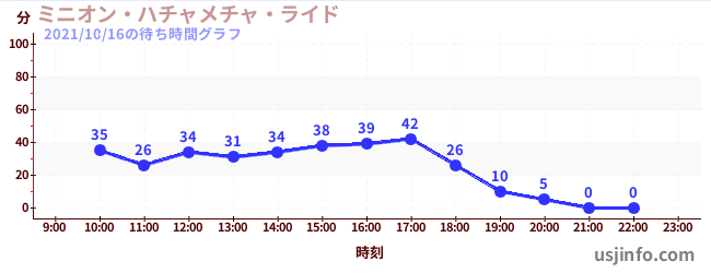 • ミニオン・ハチャメチャ・ライド$B$N(B2021年10月16日の待ち時間