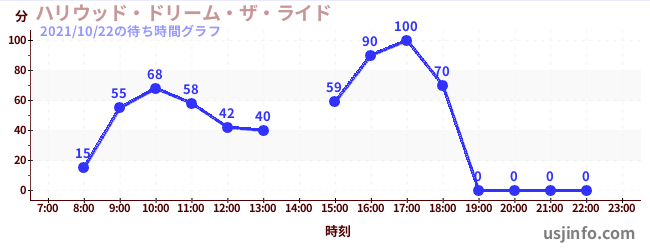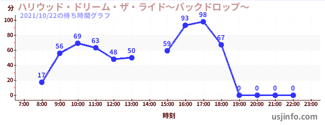 • ハリウッド・ドリーム・ザ・ライド〜バックドロップ〜$B$N(B2021年10月22日の待ち時間