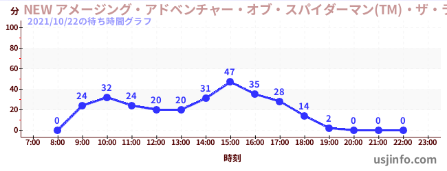 • NEW アメージング・アドベンチャー・オブ・スパイダーマン(TM)・ザ・ライド 4K3D$B$N(B2021年10月22日の待ち時間