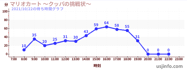 • マリオカート ~クッパの挑戦状~$B$N(B2021年10月22日の待ち時間
