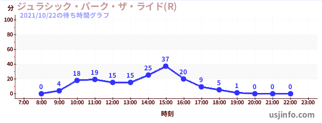 • ジュラシック・パーク・ザ・ライド(R)$B$N(B2021年10月22日の待ち時間