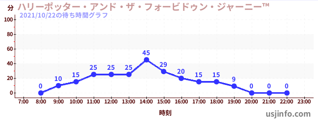 • ハリーポッター・アンド・ザ・フォービドゥン・ジャーニー™$B$N(B2021年10月22日の待ち時間