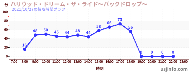 • ハリウッド・ドリーム・ザ・ライド〜バックドロップ〜$B$N(B2021年10月27日の待ち時間