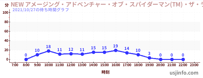 • NEW アメージング・アドベンチャー・オブ・スパイダーマン(TM)・ザ・ライド 4K3D$B$N(B2021年10月27日の待ち時間