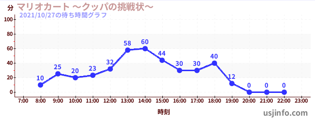 • マリオカート ~クッパの挑戦状~$B$N(B2021年10月27日の待ち時間