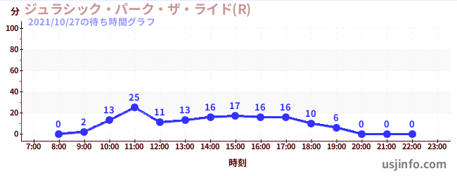 • ジュラシック・パーク・ザ・ライド(R)$B$N(B2021年10月27日の待ち時間