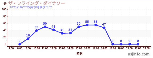• ザ・フライング・ダイナソー$B$N(B2021年10月27日の待ち時間