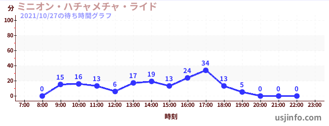 • ミニオン・ハチャメチャ・ライド$B$N(B2021年10月27日の待ち時間